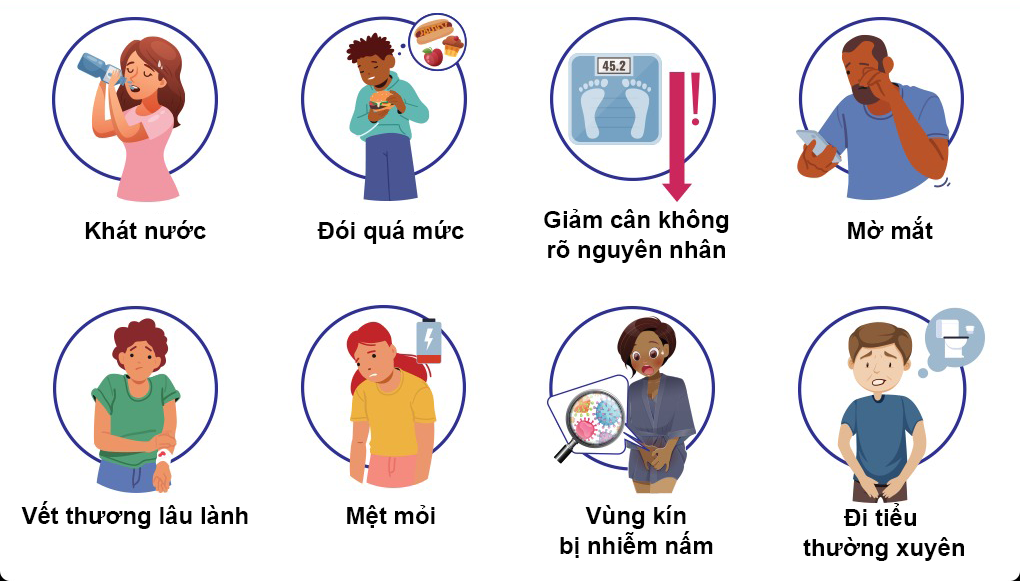 Các triệu chứng của đái tháo đường có thể khác nhau tùy theo loại bệnh, nhưng nhìn chung có những dấu hiệu chung mà người bệnh có thể nhận thấy: